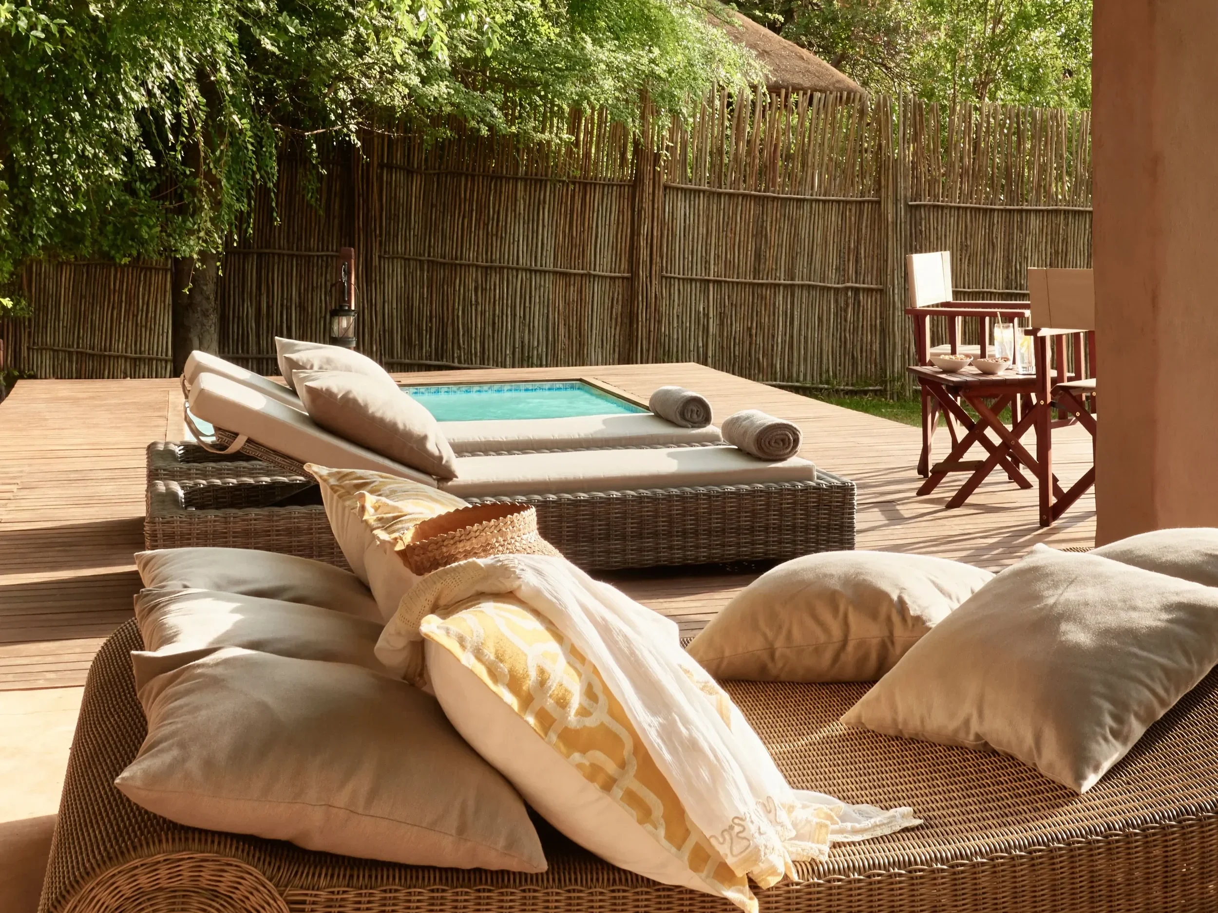 Perhaps if more treehouses were built like the 12 at Sussi & Chuma Lodge, more of us would be living in them. Each is strategically positioned among the ebony trees lining the Zambezi riverbank and joined by wooden walkways. Outside they blend effortlessly into their leafy surroundings; under their thatched roofs, each treehouse has its own ensuite bathroom and private riverfront terrace. Upriver, awe-inspiring Victoria Falls produce a constant roar and a cloud of brilliant spray, sometimes rising to 2,000 feet or more and visible up to 30 miles away.