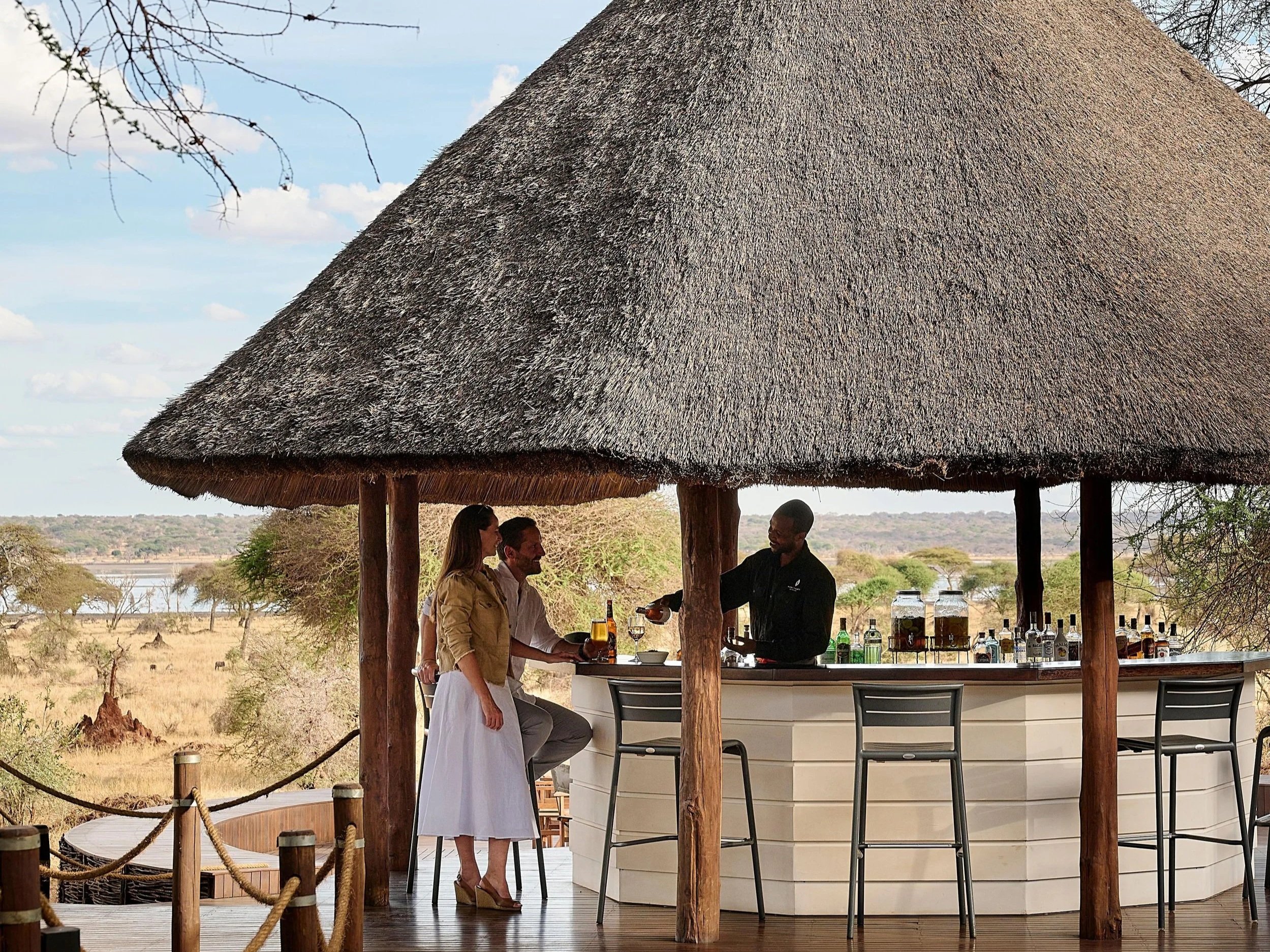 Shaded by baobab trees in a secluded corner of Tarangire National Park, Swala Camp features 12 contemporary, open-plan tents that overlook the floodplains from large decks. Meals are served on the main dining deck beneath the shade of an ancient baobab tree. The stilted, thatched-roof communal areas include a bar, boma, library, boutique, and adjacent pool.