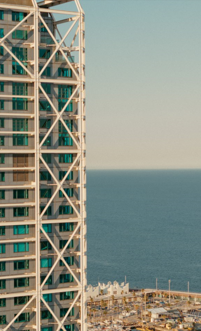 Just a hundred yards from the Mediterranean, the hotel rises above Port Olímpic as one of the city’s most striking architectural landmarks and Europe's only artistic urban resort. Designed by Bruce Graham, the 44-story tower of glass and steel gleams in the sunlight, making a bold, modern statement against the blue sea.